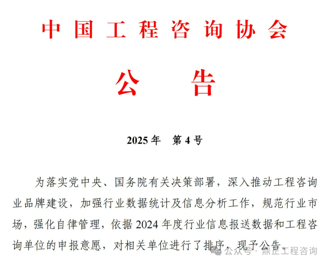 為進一步推動工程咨詢行業(yè)品牌建設(shè),規(guī)范行業(yè)行為、提高自律管理,8月21日,中國工程咨詢協(xié)會在官網(wǎng)發(fā)布了關(guān)于2024年度工程咨詢單位排序的公告。鼎正憑借穩(wěn)健的經(jīng)營實力和綜合表現(xiàn),同時榮登兩項百強榜單,位列“2024工程咨詢單位營業(yè)收入中型企業(yè)100強”第57位,以及“2024工程咨詢單位民營企業(yè)營業(yè)收入100強”第71位!